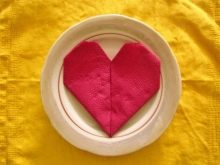 - El cor vermell és senzill. És convenient guardar aquests cors per a una vetllada romàntica, que serveix com a complement de la taula festiva del dia de Sant Valentí.