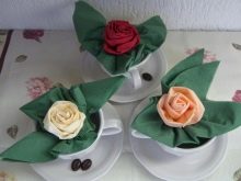 Seria avorrit mirar la taula amb uns tovallons embolcallats casualment en un got i trossos de tela col·locats sota plats. Una taula degudament servida no té molèsties, tot és important per a ell. És bo veure origami real en un porta-tovallons i una flor de tèxtil a la planxa. Podeu fer-ho tot vosaltres mateixos i hi ha moltes maneres.