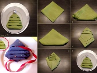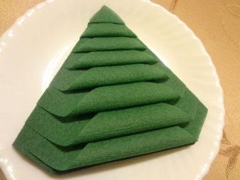 L'arbre resultarà més natural si la tela està seleccionada de color verd. Per tant, heu de doblegar el tovalló dues vegades, cada vegada que gireu la capa cap amunt uns dos centímetres. Gireu el producte, gireu les cantonades cap al centre. El triangle resultant s’ha de capgirar amb cura i, després, formar un arbre de Nadal, doblant cada capa i ajustant-lo a l’anterior. L'arbre es pot posar en un plat, decorat amb bon gust.