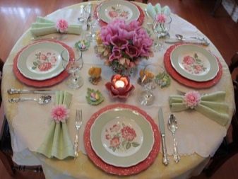 - El tema de la reunió s'ha de plasmar en la disposició de la taula. Un esdeveniment formal implica una decoració senzilla i rigorosa. Les vacances a casa permeten plats brillants, decoracions i petites coses acceptades en família. Es crea un ambient càlid per als amics sense excessos exuberants i plats massa cars que es poden trencar, creant molèsties en la comunicació. La taula per a una vetllada romàntica està saturada de tendresa i colors vius.Les espelmes i els tovallons en forma de flors o ocells són atributs indispensables d’aquestes reunions.