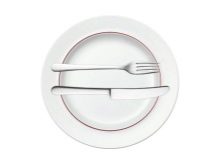 A continuació, se serveixen primers i segons cursos, els dispositius també corresponen més sovint al diàmetre de la placa, i tots els posteriors no difereixen gaire. Si avui no mengeu sopa, quedarà al mateix lloc una cullerada de cullera profundai en un moment determinat quan el plat canviï, el cambrer el recollirà.
