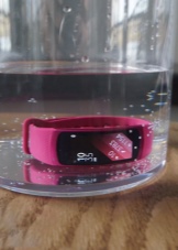 Malauradament, el vidre de la part davantera només té un sentit estètic. A la polsera no hi ha cap control de pantalla ni de tacte. El producte ve amb una corretja de silicona estreta amb fermall estàndard.L’accessori està disponible en tres colors: una caixa negra i la corretja del mateix color, una caixa daurada i una corretja blanca, una caixa rosa i una corretja de color crema.