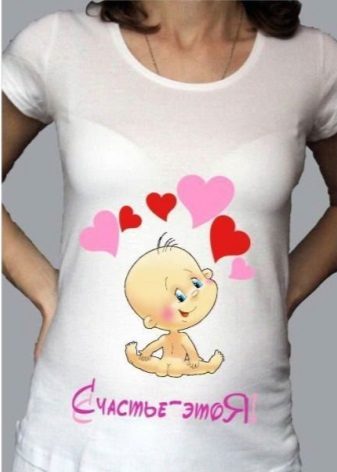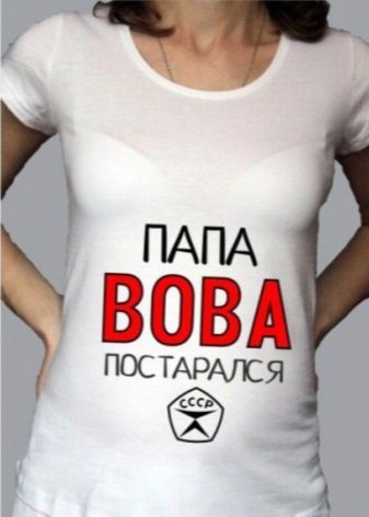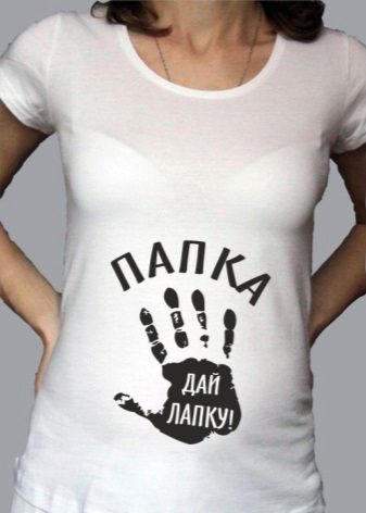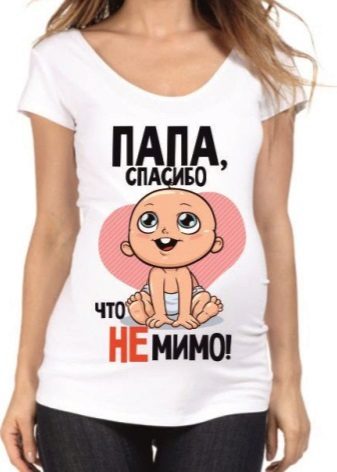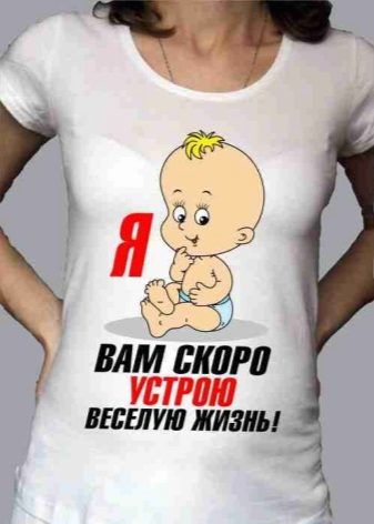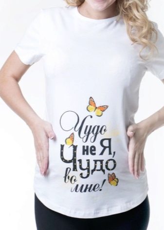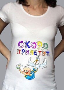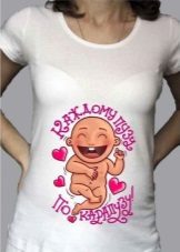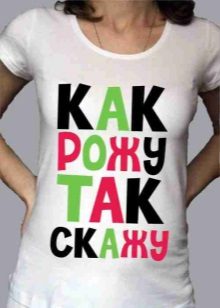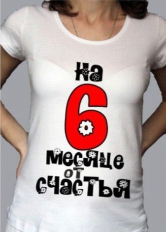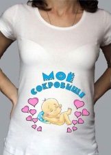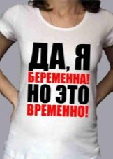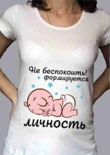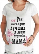 La varietat de samarretes amb inscripcions és tan fantàstica que tota mare expectant pot triar fàcilment un model adequat per a ella mateixa amb una bonica imatge o una divertida inscripció.