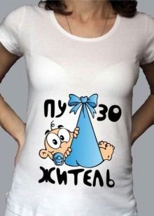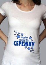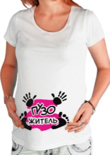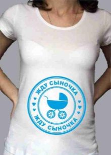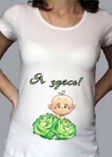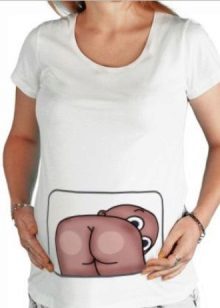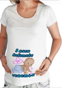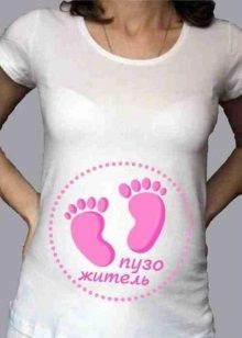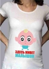Una futura mare no només pot aprofitar idees preparades, sinó també mostrar la seva imaginació inventant una opció individual. Afortunadament, no és difícil demanar una samarreta amb la inscripció seleccionada i una estampa adequada.