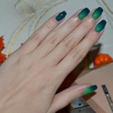 - Gel tèrmic - perquè els amants canviïn "davant dels seus ulls", propens a canvis d'imatge. Quan és calent, aquest gel a les ungles es veu clar i delicat, i al fred es torna brillant. L’ombra “doble” és especialment exigida pels turistes que viatgen als països del sud: en contrast amb el sol i l’aigua, els tons de vernís permeten gaudir plenament de l’efecte canviable.