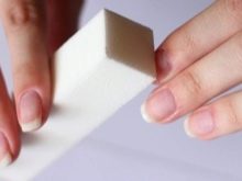 - Abans d'aplicar la base, les ungles estan polides. L’estabilitat i la qualitat del recobriment depèn de la neteja i neteja de la placa. Buff només elimina el brillantiu - la capa de queratina de la superfície de l’ungla. Això s’ha de fer amb moviments delicats per no malmetre la seva estructura.