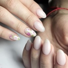 - A continuació, s’aplica la base amb una gota d’estirament sobre tota la superfície de la placa de l’ungla i s’asseca en una làmpada ultraviolada durant dos minuts. És important donar la forma regular al material a ampliar per tal que en el futur les ungles semblin agradables estèticament.
