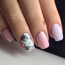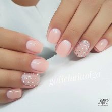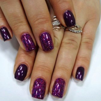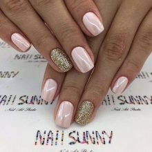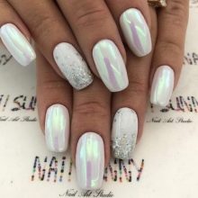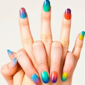 No cal dibuixar un degradat de color. Una sèrie de vernissos de gel La llum espacial es caracteritza per l'addició de guspires de diferents textures i mides. Amb llum brillant, una manicura no deixarà a ningú indiferent.