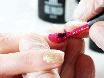 Treballar amb alguns vernissos de gel, per exemple, aquells on, al final del treball, es notarà qualsevol efecte, requereix un tall previ d’arxiu d’ungles i l’aplicació d’una base especial. Per descomptat, aquest procés no pot ser anomenat beneficiós per a la salut de l’ungla. Per tant, val la pena donar preferència als xavals monofàsics, treballs amb els quals no implica cap deformació de l’ungla.