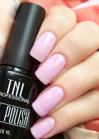 Definitivament obtindràs la mirada entusiasta dels altres si preferiu TNL 197També s’anomena el color de la primavera. Aquesta és una tonalitat lila suau i molt agradable. Apte per a un vestit estricte d’oficina i per a un emocionant passeig amb els amics durant els primers dies càlids. La textura és delicada i el poliment de gel és sense pretensions.