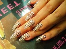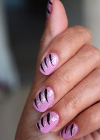 - En moda, disseny animalista en una realització moderna. Les ratlles de zebra no s’han de fer amb colors naturals. Suficients indicis i tocs clars. I els accents brillants complementen adequadament el patró simple.