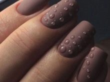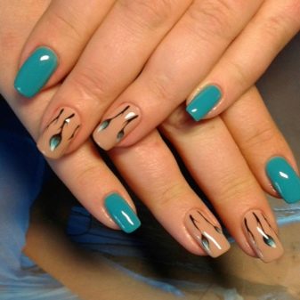 Les gotes de pluja són una tècnica interessant i fàcil d’utilitzar, que complementa molt bé diferents tipus de manicura a la temporada de primavera i estiu, així com a la tardor. Les gotes translúcides delicades es creen amb el pinzell o els punts habituals.Es col·loquen en diferents mides i de manera caòtica, simulant que s’escampen gotes d’humitat o rosada fresca. El disseny amb flors, fruites, ombre i un revestiment senzillament senzill farà que aquest mètode sigui més realista, alegre i fresc.