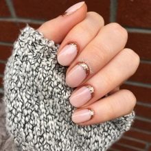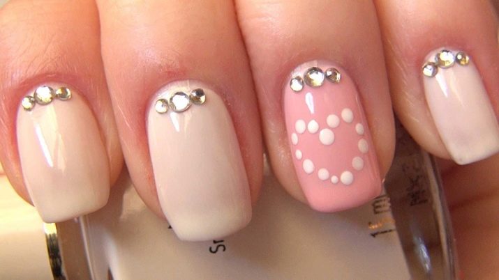 - Els cors bonics i les pedres delicades decoraran ungles curtes, molt populars durant més d'una temporada. Trieu matisos nus i estableix accents adequats. Les ungles tindran un aspecte molt net i femení, i la manicura quotidiana brillarà d'una manera nova.
