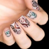 Així, la làmina fa la feina de crear una manicura única senzilla, interessant i permet crear un disseny no només per a ocasions especials, sinó també com a opció empresarial quotidiana.