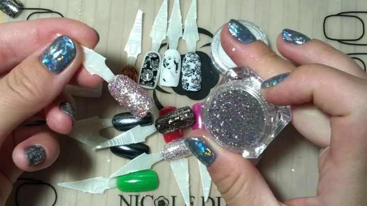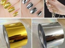 Els artesans i principiants professionals també gaudeixen d’utilitzar làmines per crear dissenys únics sobre el poliment de gel. Les imatges són brillants i espectaculars, empresarials i solemnes, passarel·les i naturals. I podeu aconseguir-los sense gaire esforç, de manera ràpida, senzilla i senzilla.
