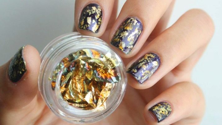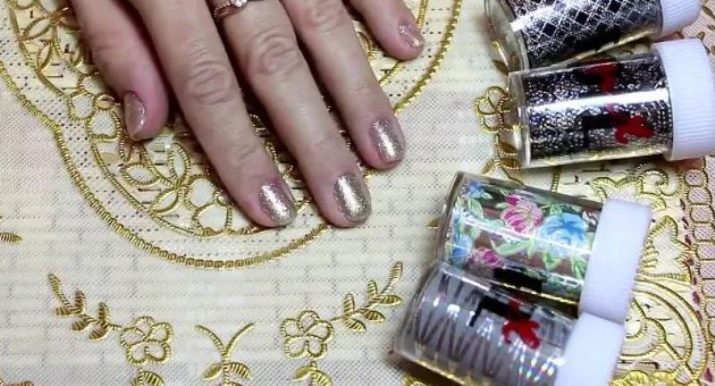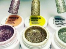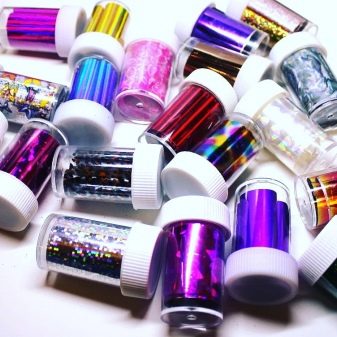 - Collit similar a la fulla d'or, molt prima. Els fabricants el produeixen en gerres petites de forma comprimida. Es pot estendre sobre polits de gel lleugerament secs sense cola, però només amb pinces. A l’hora d’aplicar, heu d’anar amb compte, perquè es trenca fàcilment, però us permet crear un nombre inimaginable de dissenys únics.