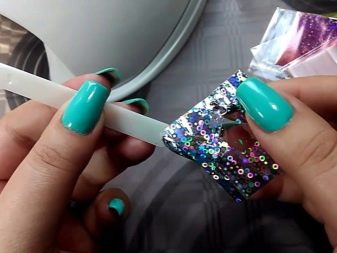 Després de totes aquestes manipulacions, les ungles es cobreixen amb una part superior transparent. A continuació, s’asseca sota una làmpada ultraviolada durant almenys tres minuts.