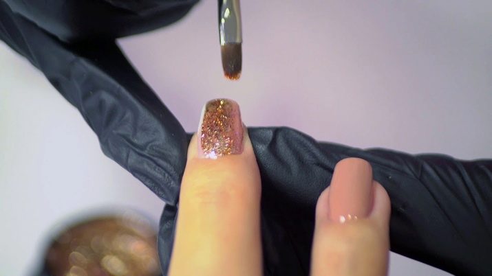 A continuació, s’aplica un vernís de gel de l’ombra seleccionat i s’asseca sota una làmpada.