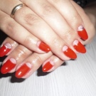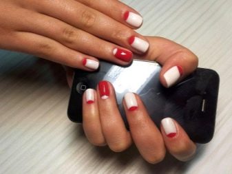 Molt sovint, la manicura lunar es realitza en vermell bàsic en combinació amb el blanc. També es demanen opcions retro, on es selecciona com a base un to cervell o borrasca.