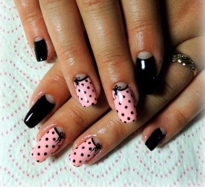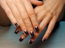 Com a manicura brillant i atractiva en la tècnica lunar, podeu triar una versió extraordinària, però molt atractiva de les ungles de lunars. Una manicura està garantida per cridar l’atenció i una combinació de tons delicats de negre rosat i fred amb accents en diversos dits complementarà la imatge i aportarà notes lúdiques.