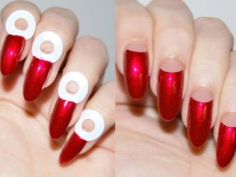 Per fer correctament forats a les ungles, val la pena escollir vernissos de gel contrastats per al recobriment. Una opció es considera reeixida i molt popular, en què només es taca el forat i la resta de l’ungla es realitza amb vernís transparent o viceversa: es deixa incolora. Es permet utilitzar colors saturats per a la tinció, per exemple, tons negres o vermells o realitzar la manicura de lluna en colors pastel més tranquils.