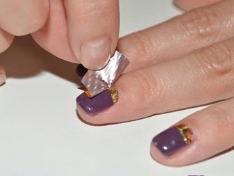 La següent realització del disseny de les ungles és el mètode de làmina. Per obtenir el resultat desitjat, primer heu de tallar elements del material en forma de semicercle o qualsevol altra forma geomètrica del material que es desitgi.
