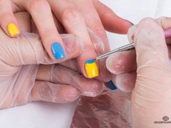 - A continuació, pinteu les ungles amb un dels colors primaris en una sola capa. Envieu el recobriment a assecar-se en una làmpada UV.