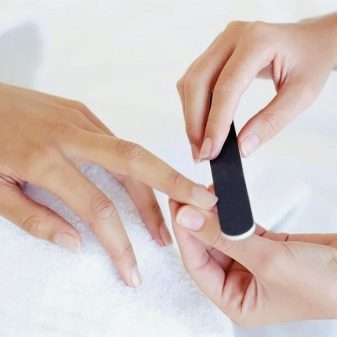 Abans de treballar amb poliments de gel, es recomana realitzar una manicura higiènica amb antelació i ajustar la placa de les ungles a la forma i longitud desitjades.