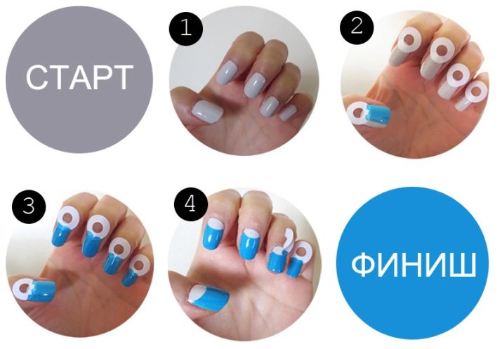 - La tècnica de crear art per a les ungles. Avui hi ha diversos mètodes habituals de disseny d’ungles en aquest disseny, que varien en el conjunt d’eines utilitzades. Els mestres i novells utilitzen plantilles per dibuixar forats, així com un raspall prim per crear manualment una jaqueta inversa. La tercera opció és el paper.
