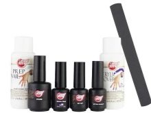 Després d’un tractament superficial complet, cal eliminar el residu de la pols de les ungles del poliment. Això es fa amb un desgreixador. Aleshores les ungles s’han d’assecar. S’aplica un abric de base a la superfície acabada, que ajudarà a extreure el màxim de la placa de les ungles. Assecar bé la base sota una làmpada UV.