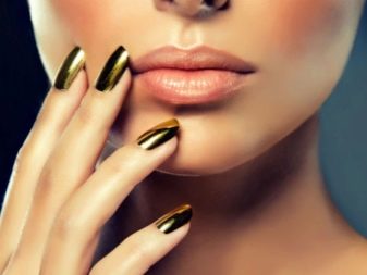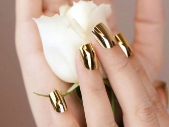 El recobriment tot d'or posa l'accent en el bronzejat, perquè s'utilitza principalment per crear una manicura d'estiu. La plata metàl·lica serà un complement addicional a un llaç en qualsevol temporada.