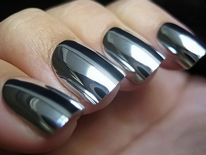 Manicura moderna amb una superfície de mirall es realitzen amb diversos tipus de recobriments: