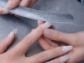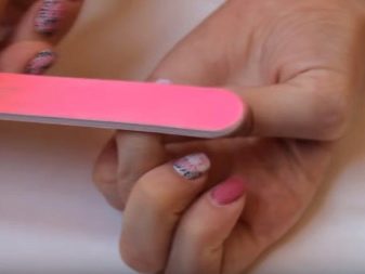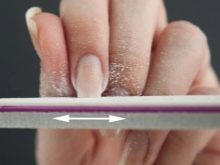 Només heu d’agafar l’arxiu, posar-lo pla i triturar metòdicament el recobriment de l’ungla. És important fer moviments en una sola direcció. Quan treieu les capes superiors del recobriment, els moviments han de ser energètics i intensos. A mesura que us acosteu a la placa d’ungles, val la pena treballar l’arxiu amb molta cura. Els acabats es realitzen millor amb un fitxer suau: et permetrà tractar correctament la superfície de l’ungla, treure la resta de la base i deixar l’ungla perfectament llisa.