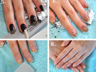 Molts practiquen l'eliminació del gel amb alcohol i acetona, alhora que subestimen la necessitat de cobrir els dits després d'aplicar el líquid. Mentrestant, l’ús de guants, làmina o film és un requisit previ per a l’èxit de tot el procediment. El fet és que per a la divisió del recobriment dur ha de passar algun temps abans que es produeixi una reacció química. L’alcohol i l’acetona tendeixen a evaporar-se molt ràpidament de la superfície a l’aire lliure, de manera que si les ungles no estan tapades, no es pot aconseguir l’efecte desitjat.