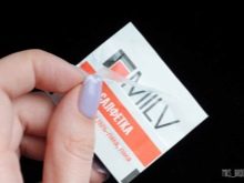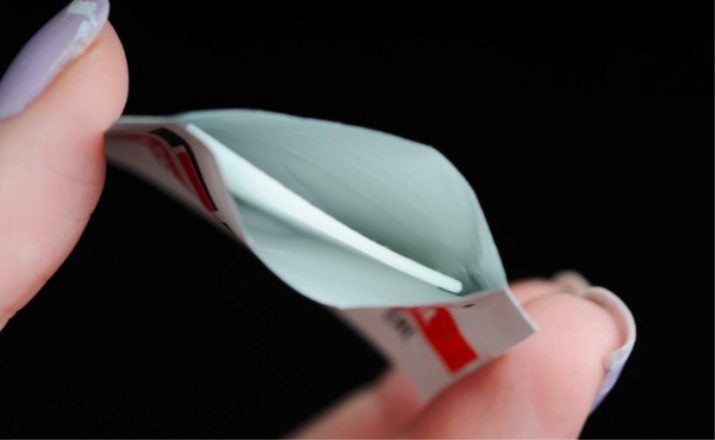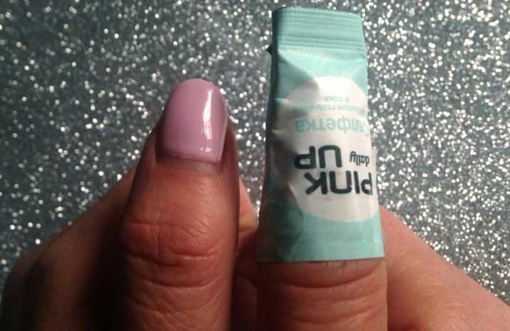 - El costat interior es presenta en forma d’un tros de teixit hipoal·lergènic elàstic, que s’impregna amb una substància dissolta amb pols de gel.A més, la composició de la impregnació conté components útils per a la cura de la placa i de la cutícula de les ungles.
