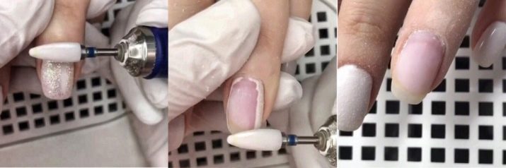 - El segon mètode és el tall mecànic del recobriment amb un tallador. Això es fa més convenientment mitjançant un aparell de manicura. Molts mestres prefereixen aquest mètode, perquè entre ells hi ha una opinió sobre el menor perjudici d’aquest mètode. El fet és que l’eliminació mecànica del gel només pot danyar la capa superior de l’ungla, mentre que la compressa descrita anteriorment també perjudica les capes profundes de la placa.