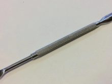 - Manicura emprenedora o rascadora. Abans d’emprendre un revestiment, s’ha de treure de la superfície de cada un una cutícula sobrecoberta, així com un pterigi.Mitjançant un polsador metàl·lic especial, es pot desplaçar la capa suau i queratinitzada a l’eix de l’ungla.