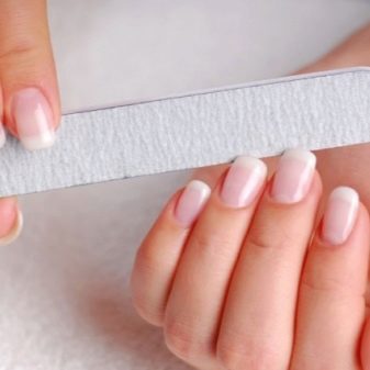 - Configuració del fitxer la vora lliure de la placa de les ungles (o per arxivar l’ungla, si cal). La punta d’una ungla femella natural necessita ser processada amb arxius de vidre o eines ceràmiques, l’abrasió de les quals és de 180/240 gra.