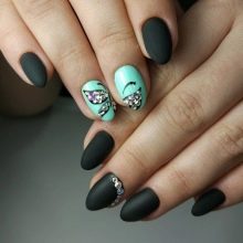 La original i efectiva manicura mat va estar en el punt àlgid de la popularitat per un motiu. Aporta un alt nivell de durabilitat a causa de la utilització de vernís de gel com a base, es veu increïblement impressionant sense esforços importants. Una varietat de textures, profunditat de color i solucions de disseny inusuals: això és el que absolutament qualsevol fashionista modern pot decidir provar per si mateixa per a les tendències actuals en el camp del disseny d’ungles.