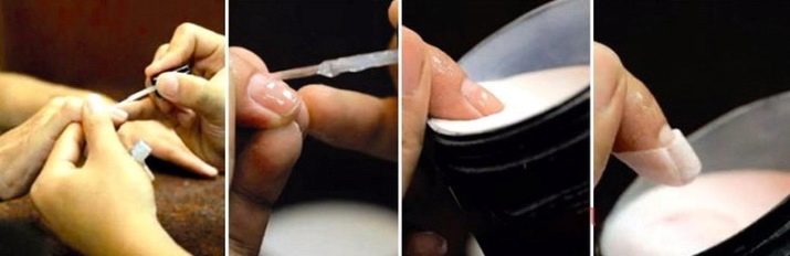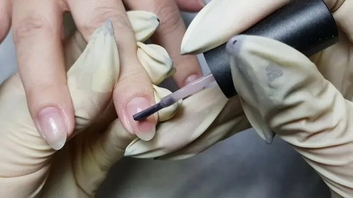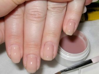 La tercera opció és l’alineació de la placa d’ungles amb gel. Cal recordar aquí que el gel no es pot treure amb un dissolvent; només es pot tallar amb una màquina de manicura o amb un fitxer abrasiu. La composició del gel és relativament no tòxica i segura. Cobreix i reforça bé l’ungla, proporcionant un recobriment uniforme i la seva resistència a factors externs.