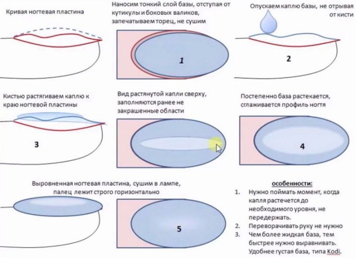 Important! El principi general de l’elecció d’una capa d’anivellament és la densitat i la densitat. Les bases líquides per als polits de gel o els gels autolivelladors no funcionaran, ja que simplement s’escorren al costat de l’ungla i creen problemes addicionals.