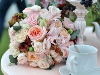 En general, la majoria d’especialistes d’etiquetes, com les floristes, parlen de l’opció amb un ram lleuger. Tot i això, no hauria de ser de color rosa, sinó de pols, pastís. El burgund roig i noble (però no massa fosc) són també els preferits de les floristeries de casaments.