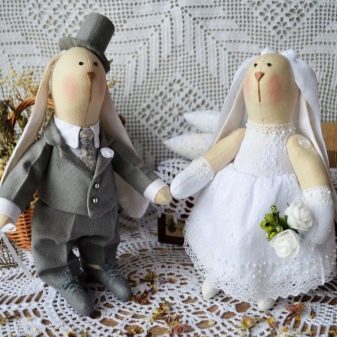 - També podeu presentar un conjunt de coixins decoratius, una imatge feta sobre tela o un bell tapís. Podeu regalar als cònjuges un parell de nines Tild, fetes d’aquest teixit. Si voleu donar alguna cosa més, per exemple, un element de decoració, aleshores és millor triar com a envàs una bossa de regal de lli.