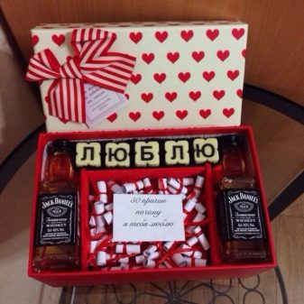També podeu elaborar una composició única de dolços sobre el tema de les vacances. Ja està a punt una bella cistella, cintes o arcs, flors i dolços preferits en embolcalls elegants, més una mica d’imaginació, artesania, i un bon regal, que actua com a decoració d’una taula festiva. I no importa que aquests dolços es moriran per tot el col·lectiu de convidats reunits per a les vacances. És important l’atenció amb què el cònjuge va reaccionar a la seva estimada.