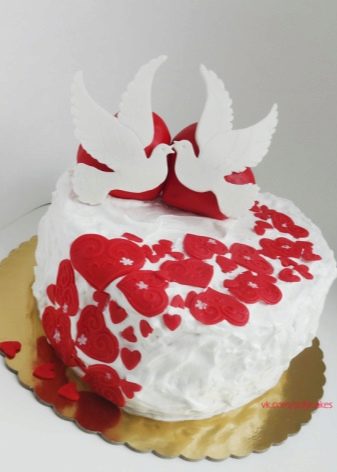 Segurament a un home li agradarà un pastís decorat en un tema del casament. Podeu cuinar-lo a la vostra cuina o fer una comanda adequada en una botiga de dolços. El disseny del plat dolç ha de ser coherent amb el tema de la celebració.
