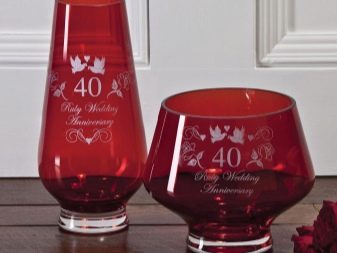 - Conjunts originals. Atès que la parella va viure durant 40 anys al matrimoni, segons la tradició, els familiars els ofereixen conjunts formats per quaranta articles. Per regla general, es tracta d’un servei, coberts, llibres, alcohol d’elit.