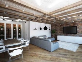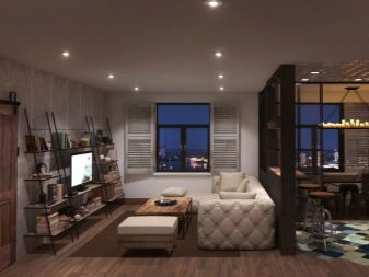 Característiques distintives d’aquest estil és maó, imitació de formigó rugós i fusta rugosa. No tothom acceptarà aquests detalls originals al seu propi saló. Però la tasca del dissenyador és que, fins i tot elements tan aparentment antiestètics, hauria d’encaixar amb èxit a l’interior, fent-lo acollidor i acollidor.