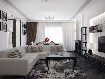 Per a la majoria dels conciutadans, la sala d’estar és un lloc on es troben mobles entapissats, armaris per guardar coses i un televisor. Aquí es reuneix tota la família per veure la seva pel·lícula preferida o simplement per relaxar-se en còmodes sofàs suaus. Però això està molt lluny del límit. També pot acollir còmodament una zona de menjador i una zona d’oficines amb un escriptori i equipament d’oficina.
