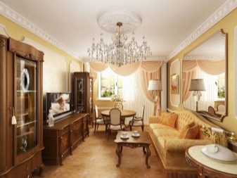 És familiar i entenedora per a tothom. En organitzar una sala d'estil clàssic, heu d'utilitzar materials de qualitat. Es tracta de fusta natural i bons tèxtils (catifes, cortines, estovalles) i el fons de pantalla corresponent. En cas contrari, s’arrisca a obtenir només una paròdia dels clàssics.
