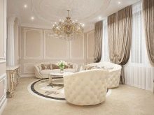- Beige. Color luxós i noble, adequat en absolutament tots els estils interiors. Si ho apliqueu en un clàssic, heu d'utilitzar diferents textures en la decoració, a més de combinar el beix amb els colors daurats, blau clar, rosat i lavanda.